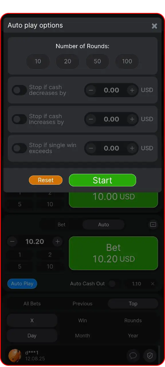 - Auto-cashout is a feature for setting a target multiplier to automatically secure your winnings;