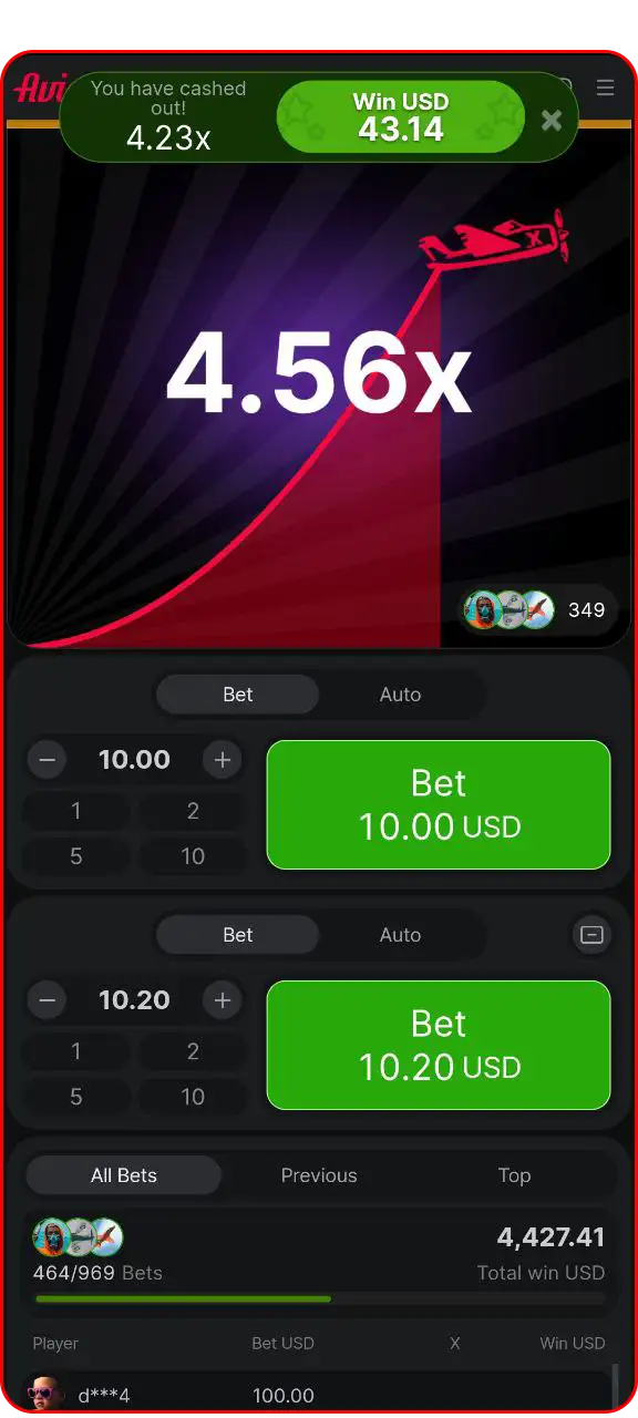 - The Multiplier is the value that increases your stake as the plane flies, starting from 1.00x;