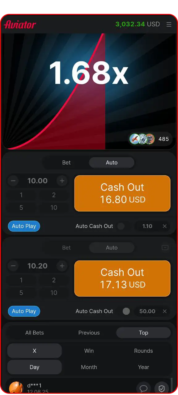 Aviator betting game permits players to set auto-cashout multipliers beyond 1.01x and up to an infinite value, subject to the casino’s specific limits. While players can set custom multipliers for each round along with default parameters for continual strategy execution, they can also opt for total manual execution of the timing decisions by disabling the auto cashout feature.